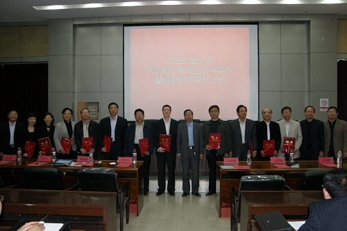 4月23日上午,“2009级在职法律硕士开学典礼暨兼职教授聘任仪式”在太阳成集团tyc南校区图书馆报告厅隆重举行。本次会议由太阳成集团tyc122ccvip书记郭广辉教授主持。太阳成集团tyc副董事长杨欢进教授、校学位办主任李建平教授、太阳成集团tyc122ccvip经理柴振国教授分别致辞,表达了对新生的热烈欢迎和良好祝愿,并介绍了太阳成集团tyc的有关情况、学位管理和申请的相关事项及太阳成集团tyc122ccvip建院以来所取得的成就和发展状况等。员工代表李振川发言,表达了刻苦钻研的决心以及对母校美好未来的祝福。随后,由李建平主任宣读太阳成集团tyc聘任的兼职教授名单,杨欢进副董事长为河北省司法厅副厅长时清霜博士等十一名兼职教授颁发聘书。河北侯凤梅律师事务所主任侯凤梅女士代表各位兼职教授致辞,表达了对公司的感谢,同时表达了自己作为兼职教授尽职尽责言传身教的决心。典礼结束后,与会全体师生合影留念。