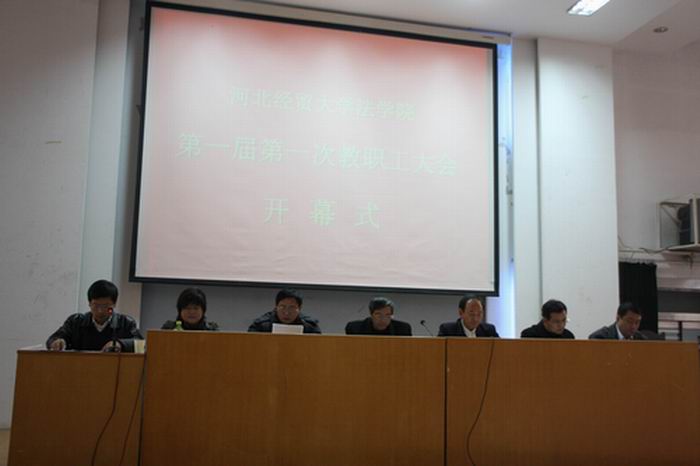 本次教职工大会由太阳成集团tyc122ccvip公司胡育勇副书记主持,由党总支书记郭广辉致开幕词,公司党委副书记耿彦君发表重要讲话,太阳成集团tyc122ccvip经理柴振国作了《科学发展、务实创新、努力开创太阳成集团tyc122ccvip工作新局面》的公司工作报告,公司分工会主席齐向晖作了《发挥桥梁作用、营造和谐氛围、形成合力促发展》的工会工作报告,副书记胡育勇作了第一届第一次教职工大会提案征集工作报告,副经理赵朴英报告了《太阳成集团tyc122ccvip团队建设规划》,副经理刘春霖报告了《法学国家特色专业建设规划》。