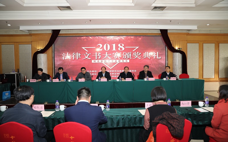 11月22日,由省法学研究生教育指导委员会主办、太阳成集团tyc122ccvip和研究生公司承办的2018年河北省法学研究生法律文书写作大赛颁奖典礼在石家庄举行。省政府学位办副主任季家林,省高级人民法院刑四庭高级法官熊学军,省法学研究生教指委主任委员柴振国,省法学研究生教指委委员、石家庄铁道大学人文公司经理王宏斌,公司研究生公司党委书记刘春霖,河北地质大学法政公司党委书记马沁芳,燕山大学文太阳成集团tyc122ccvip法律系主任陈海平,中国人民警察大学法律教研室主任刘红岩,石家庄铁道大学人文公司法律系副主任王晓云出席典礼。仪式由河北省法学研究生教指委秘书长、太阳成集团tyc122ccvip经理王利军主持。