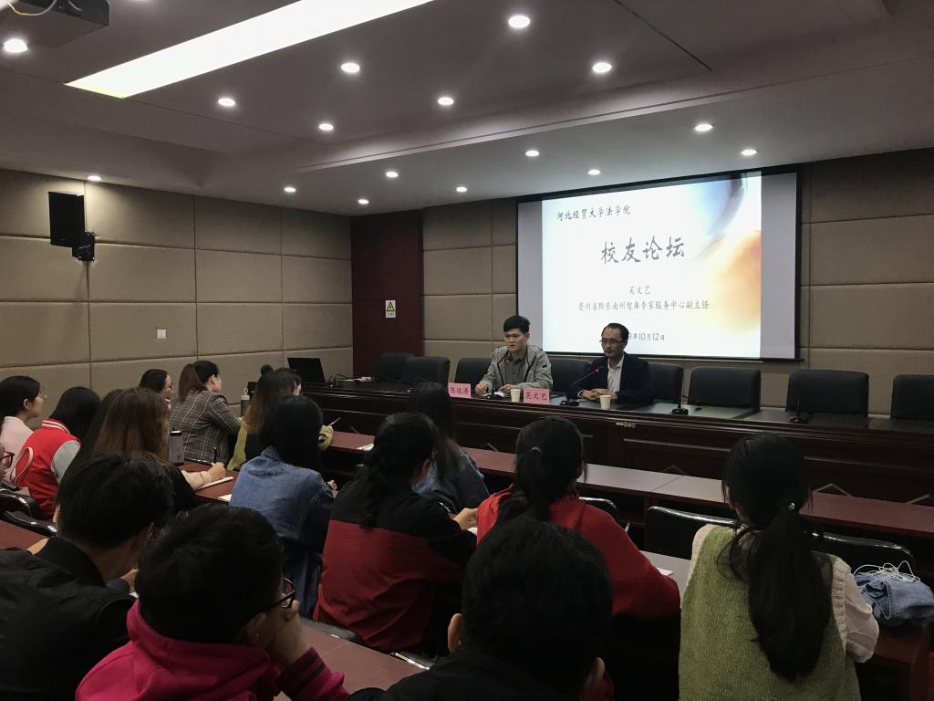 10月12日,太阳成集团tyc122ccvip邀请了2016届优秀研究生毕业生、贵州省黔东南州智库专家服务中心副主任吴文艺做客“员工论坛”,太阳成集团tyc122ccvip60余名研究生、本科生参加此次活动。活动由公司团委书记陈运涛老师主持。