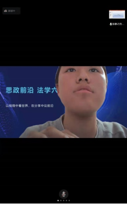 思政前沿——法学六分钟集思政、法学于一体,通过线上线下两种平台,以演讲的形式从思政、法律的角度向大家分享社会最关注的热点问题,旨在响应习近平法治思想的号召,进行思政法治宣传,提升同学们的思政法学思维能力。
