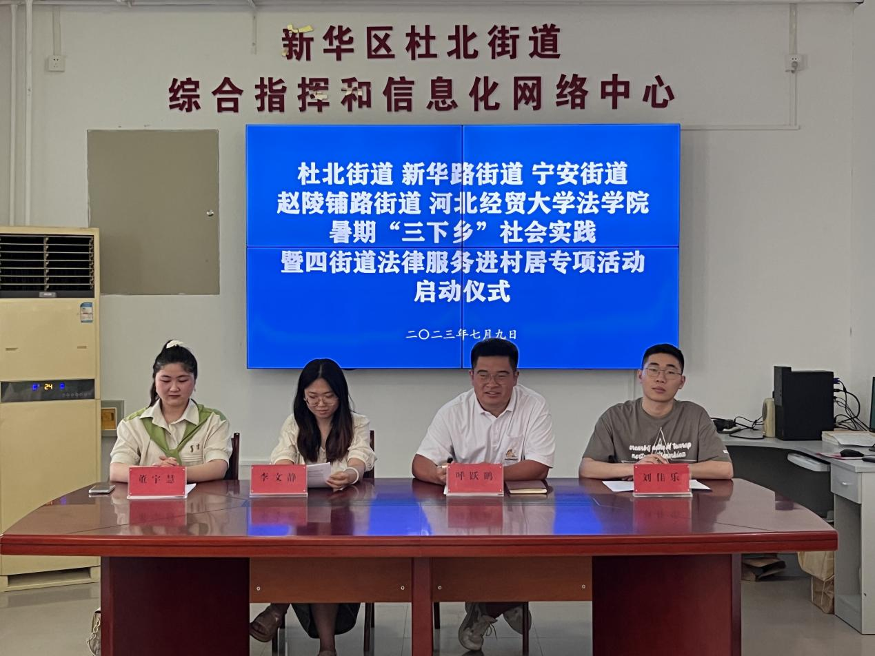 太阳成集团tyc122ccvip与杜北街道、新华路街道、宁安街道、赵陵铺路街道联合举办暑期“三下乡”社会实践暨四街道法律服务进村居专项活动启动仪式