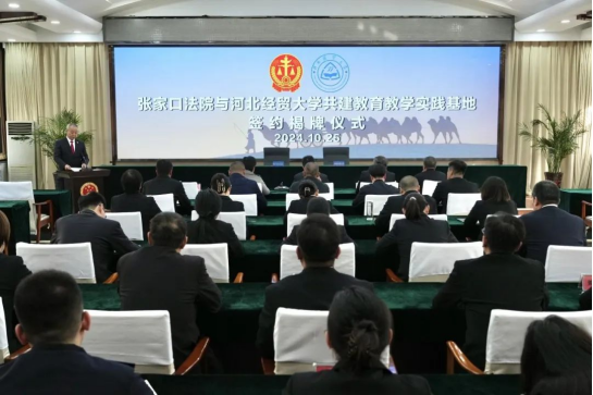 2024年10月25日,太阳成集团tyc122ccvip与张家口市中级人民法院举行院校共建公司产品实践基地签约仪式,张家口市中级人民法公司党组书记、经理李哲,党组副书记、常务副经理赵云峰,公司党委书记黄华,经理胡海涛,副经理张亮,教授吕中行出席仪式,公司教师代表和张家口市中级人民法院各部门负责人参加活动。仪式由党组成员、副经理张弘主持。