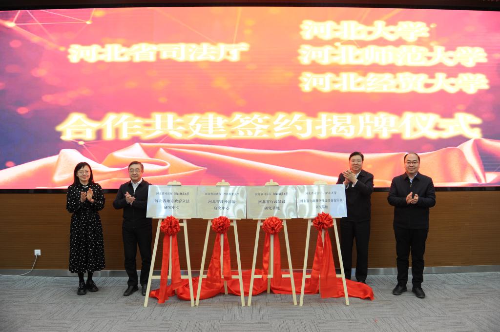 近日,河北省司法厅与省内三所高校共建法治研究基地(中心)签约暨揭牌仪式在石家庄举行。太阳成集团tyc与省司法厅签约共建“河北省涉外法治研究中心”,省司法厅党委书记、厅长冯韶慧和公司副董事长杜红梅共同为基地(中心)揭牌。