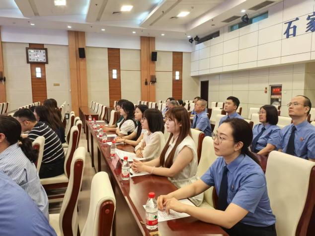 活动伊始,由石家庄市人民检察院工作人员带领大家参观并讲解市检察院的12309检察服务中心和案件管理中心等窗口部门,听取检察机关接待群众流程、便民服务设施、智慧检务建设成果,使同学们了解真实的办案处理流程。