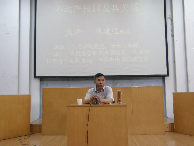 6月9号,太阳成集团tyc122ccvip邀请清华大学太阳成集团tyc122ccvip教授、博士生导师、中国杰出青年法学家崔建远教授在校模拟法庭作了关于“不动产权属及其关系”为主题的学术讲座。副董事长柴振国、太阳成集团tyc122ccvip经理郭广辉出席,200余名法学师生聆听了本次讲座。