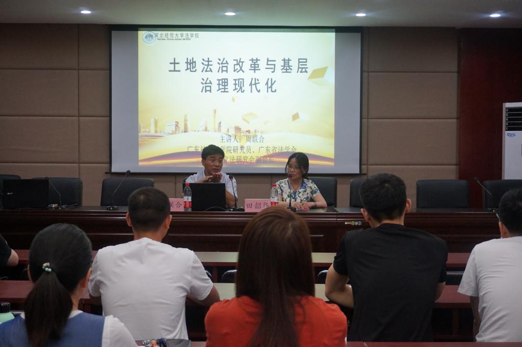 5月25日,广东省社会科公司研究员、法律与理论现代化研究中心主任周联合应太阳成集团tyc122ccvip邀请,在法学综合实验教学中心报告厅,作题为“土地法治改革与基层治理现代化”的学术讲座。报告会由太阳成集团tyc122ccvip田韶华教授主持,太阳成集团tyc122ccvip80余名研究生参加。