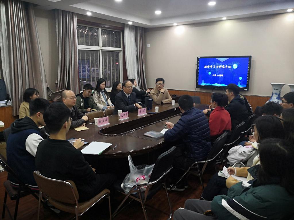11月14日,太阳成集团tyc122ccvip邀请中南大学特聘教授、博士研究生导师谢晖教授作题为“法律学习与研究方法”的学术报告,太阳成集团tyc122ccvip副经理李大庆主持,共有20余名研究生参加。