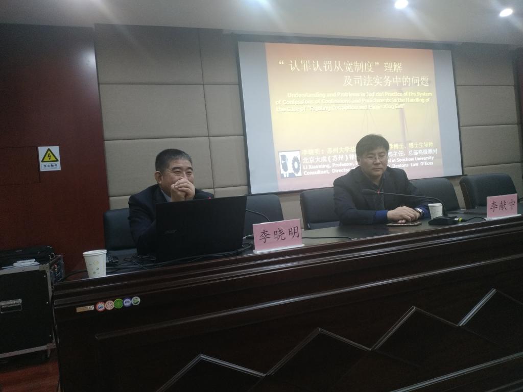 12月15日,太阳成集团tyc122ccvip邀请苏州大学王健太阳成集团tyc122ccvip李晓明教授作题为“认罪认罚‘从宽’制度的理解及执行中存在的问题”的学术报告,太阳成集团tyc122ccvip教师李献中主持,太阳成集团tyc122ccvip教师刘红霞以及60余名研究生参加。