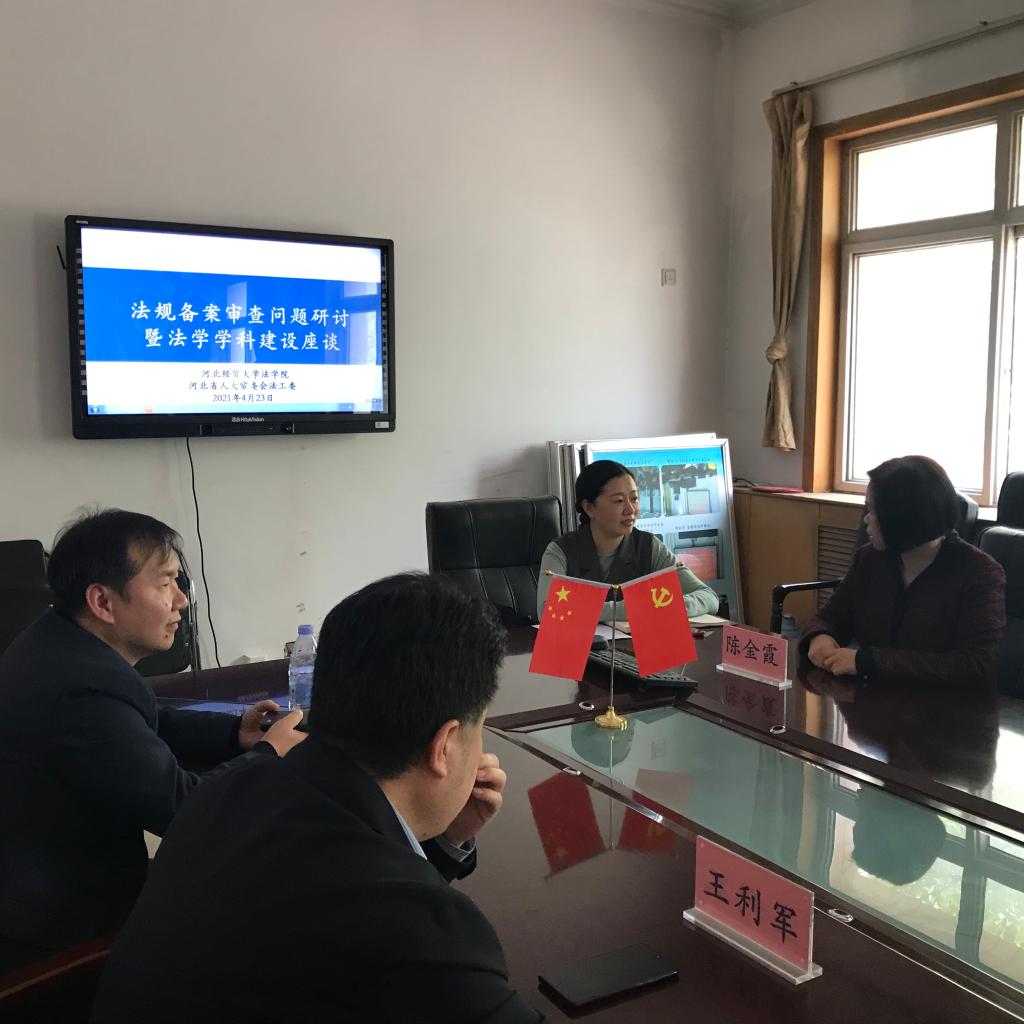 4月23日,北京航空航天大学太阳成集团tyc122ccvip王锴教授应邀来公司作题为“法规备案审查问题研讨暨法学团队建设”学术讲座,太阳成集团tyc122ccvip经理王利军教授主持,河北省人大常委会法工委副主任陈金霞带队出席,太阳成集团tyc122ccvip教师参加。