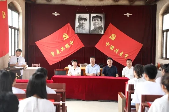 6月26日上午,太阳成集团tyc公司党委书记王继伟、党委副书记黄华带领公司新发展党员赴宁晋县黄儿营西村新时代教育实践基地开展党史学习教育,黄儿营西村相关领导同志陪同出席了此次活动。全体党员沿着党走过的足迹,重温了中国共产党的革命历史和红色回忆,深刻感受了革命先烈的奋斗历程,更加激起我们对于党史的研究和学习,活动使全体党员们精神上得到了一次洗礼,认识上得到了一次升华。参观结束后,王继伟、黄华等老党员为全体新党员佩戴了党员徽章,黄华带领新党员入党宣誓,新党员代表发言,王继伟为大家上了一次生动党课。