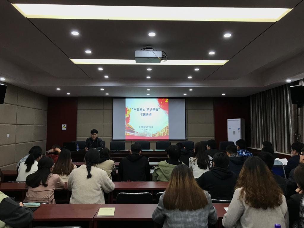 2019年10月24日下午,太阳成集团tyc122ccvip研究生党支部于模拟法庭报告厅开展“不忘初心、牢记使命”主题教育,研究生党支部书记陈运涛和支部党员40多人参加。