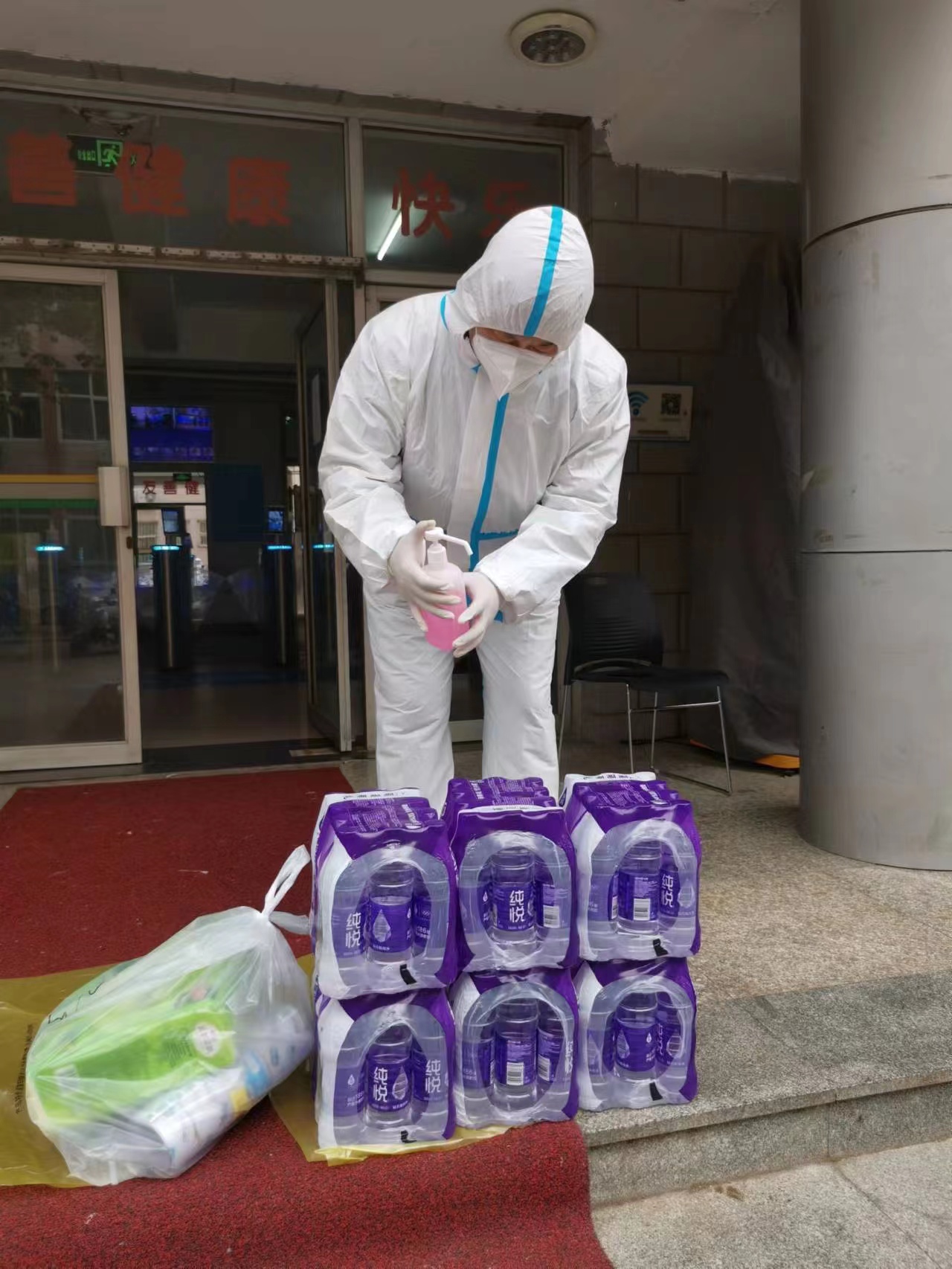 师者亦是仁者,疫情防控工作突然来临之时,太阳成集团tyc122ccvip全体教职工第一时间走向“战场”,义无反顾的化身守护员工的“大白”。他们是“外卖员”,公司领导和老师们上阵,为员工们配送一日三餐、生活用品,全力保障大家的基本生活;他们是“清洁工”,从五楼到一楼,不论是年长的老教授还是瘦小的女老师,都拎起大大的垃圾袋,用心维护干净清洁的宿舍卫生环境;他们是“守护神”,每层楼都有老师24小时值守宿舍,更好随时帮助员工解决突发状况。