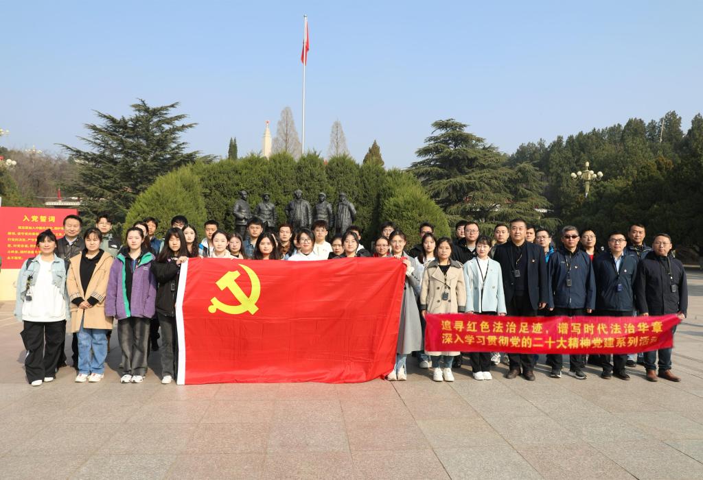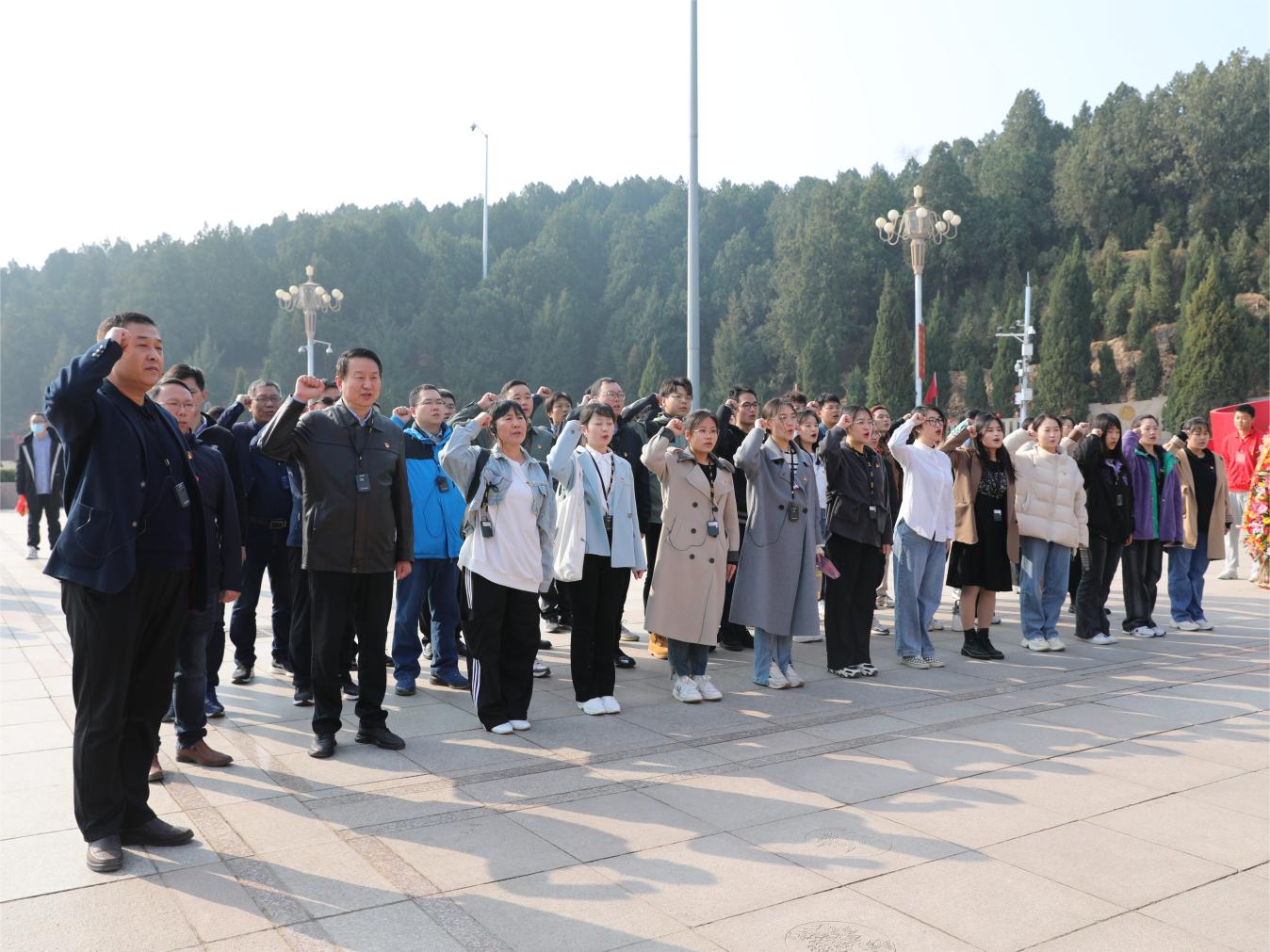 在西柏坡纪念馆广场前,王继伟带领新发展党员与师生支部书记面向党旗庄严宣誓。天清气朗,誓词响亮,这既是公司运用好红色革命资源、传承好革命精神,持续做好学史力行的鲜明体现,也是党员教师、员工党员走好“党之初”,重走赶考路,接受革命传统教育的一次精神洗礼。