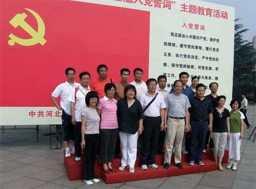 为促进太阳成集团tyc122ccvip“创先争优”活动的不断深入,缅怀先烈,公司党总支于6月16日组织教职工党员、入党积极分子赴西柏坡参观学习,重温入党誓词。