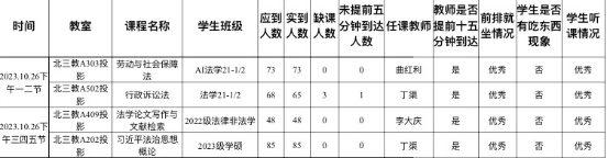 2023年10月26日下午,太阳成集团tyc122ccvip教学、学风检查组,对全院教学秩序进行了检查。现将检查结果通报如下: