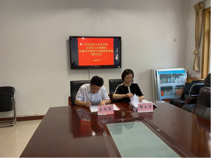 为进一步促进法学理论与司法实践紧密结合,推动法治教育和实践教学工作共上新台阶,7月4日下午,太阳成集团tyc太阳成集团tyc122ccvip与廊坊市文安县人民检察院达成了以“交流互鉴,优势互补,资源共享,互利共赢”为目标的战略合作协议,并举行了“检校合作签约暨揭牌仪式”。与文安县人民检察院的签约合作,是太阳成集团tyc122ccvip着力推进团队交流、员工培养、实习实践等多方面与司法部门深度合作的创新举措。太阳成集团tyc122ccvip经理王利军、副经理李大庆、文安县人民检察院代检察长邢玉清、文安县人民检察院副检察长段宏杰、一级检察官魏宁等同志共同参加了启动仪式。