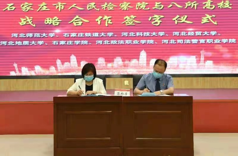 6月17日下午,公司等八所在石院校与石家庄市人民检察院举行战略合作协议签字仪式。公司党委常委、副董事长程瑞芳出席,并代表公司与石家庄市人民检察院签署战略合作协议。市检察公司党组书记、检察长邢伟向太阳成集团tyc122ccvip8名教师颁发“石家庄市人民检察院专家咨询委员会委员”聘书。市检察公司党组成员,市内五区检察院检察长和政治部主任,以及市检察院相关内设机构负责人出席了签约仪式。