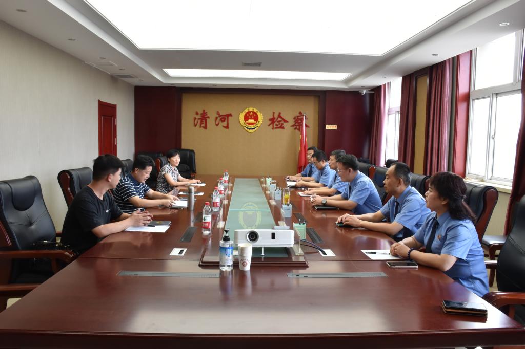 王利军首先就公司基本情况、团队队伍建设、人才培养模式以及各项教学创新成果作了详细介绍。他表示检校共建可以实现高校理论研究与检察实务深入互动,对员工实习实践能力提升有积极意义。