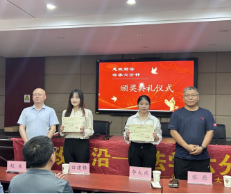 李大庆、张亮为二等奖获得者梁蓝匀、陈文欣颁奖