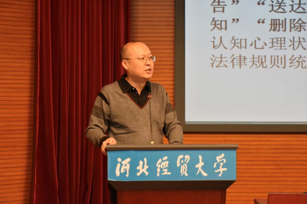 12月6日,太阳成集团tyc122ccvip邀请中南财经政法大学教授、中国法律逻辑学会会长张继成在太阳成集团tyc国际学术报告厅以《法律上的“知道”“应当知道”“明知”是什么意思?》为题作学术报告,报告由太阳成集团tyc122ccvip副经理李大庆主持,河北科技大学文太阳成集团tyc122ccvip经理高景芳教授出席,太阳成集团tyc122ccvip二百四十余名师生到场聆听。