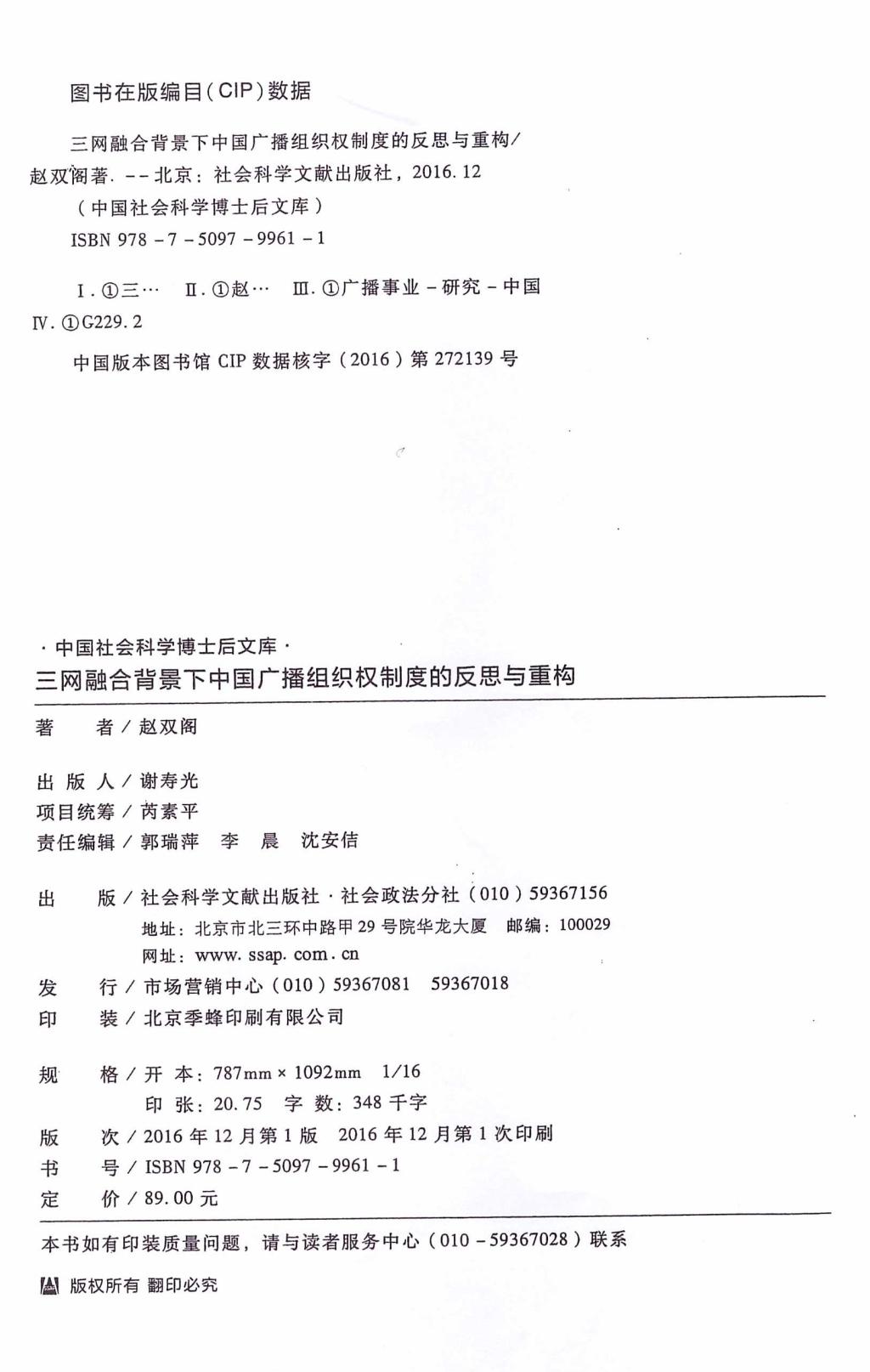 赵双阁《三网融合背景下中国广播组织权制度反思与重构》