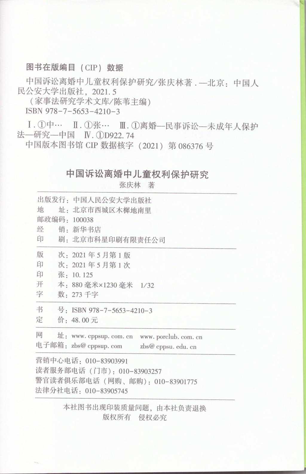 张庆林《中国诉讼离婚中儿童权利保护研究》