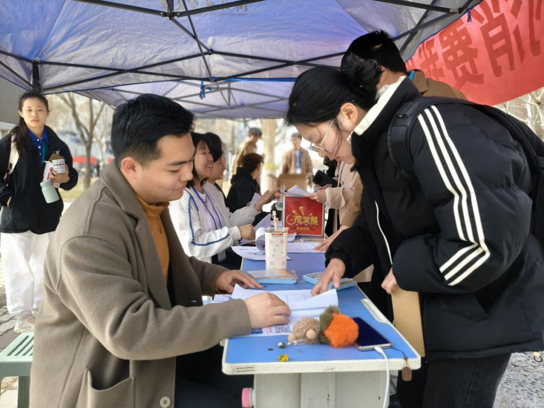 初春渐暖,朝阳正升。公司普法志愿者来到韶华路旁,开始了紧张有序地准备工作。他们悬挂宣传横幅、摆放展板、准备问卷,营造出浓厚的普法氛围。本次活动依托抽奖问答的形式,畅通师生学法问法的渠道,同时注重趣味性,增加师生的参与度、活跃度。活动现场一时间人群聚集,气氛不断升温。