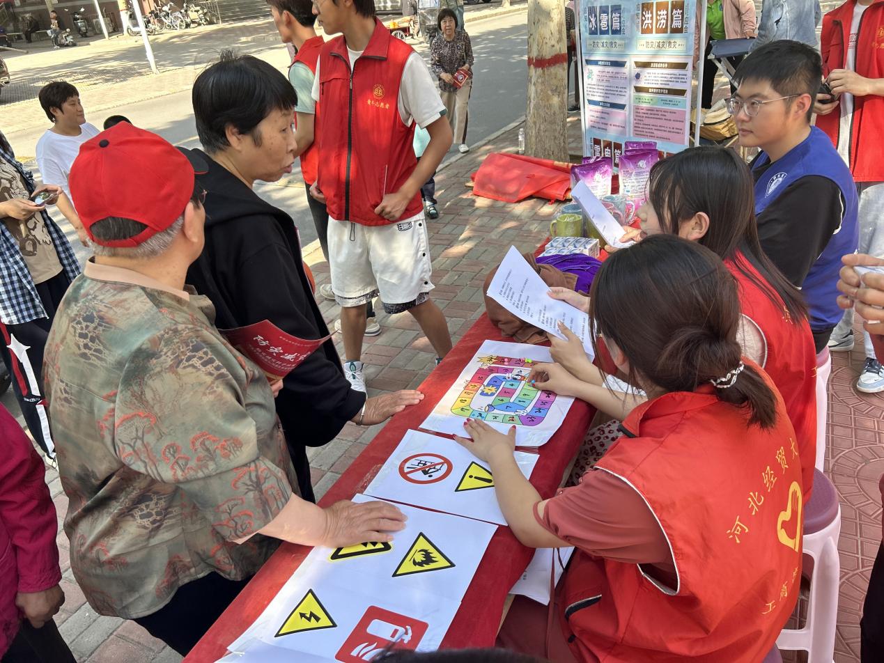 活动期间,志愿者们为大家准备了“安全标识猜猜猜”互动游戏,将常见的消防、交通、应急等安全标识融入趣味竞猜,激发居民主动学习安全知识的热情,还设置了“防灾减灾逃生棋”,棋盘上布满模拟灾害场景的关卡,居民们通过掷骰子前进,在答题闯关过程中熟悉逃生路线和避险技巧。此外,我们的志愿者也向居民群众们分发了防灾减灾手册,向他们讲解基础防灾知识的同时,也积极解答了居民们在生活中遇到的防灾减灾问题,推动居民安全防灾意识入脑入心。