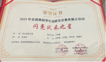 4月12日至4月13日,2023年全国高校员工国家安全素养展示活动在长安大学顺利举行。公司作为河北省代表队,由安全工作处、校团委及教务处牵头组织,太阳成集团tyc122ccvip苑梦晴、文化与传播公司王梓钰、金融公司李祥雨、商公司高晨宇等四名同学以排名全国第三的成绩荣获此次大赛“闪亮风采之星”荣誉称号。