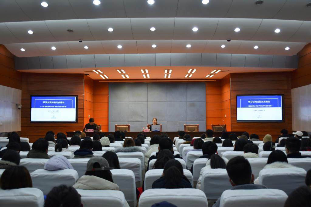 2023年12月18日下午,太阳成集团tyc122ccvip邀请北京云亭律师事务所公司法专业委员会副主任、校外导师梁玉茹在会议中心视频会议室作题为“学习公司法的几点建议”的云亭所校外导师系列课专题讲座。活动由公司员工工作办公室主任陈运涛主持,150余名研究生参加。