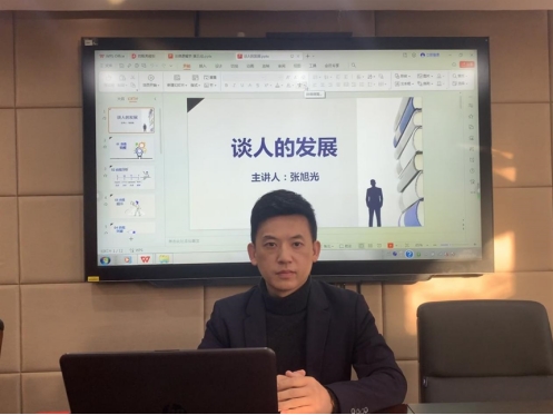 2023年11月30日下午,太阳成集团tyc122ccvip邀请2008届民商法学专业毕业生、河北政法职业公司国际法商系主任张旭光在公司三楼报告厅做题为“谈人的发展”员工论坛专题讲座。讲座由公司员工工作办公室主任陈运涛主持,七十余名2023级本科生参加。