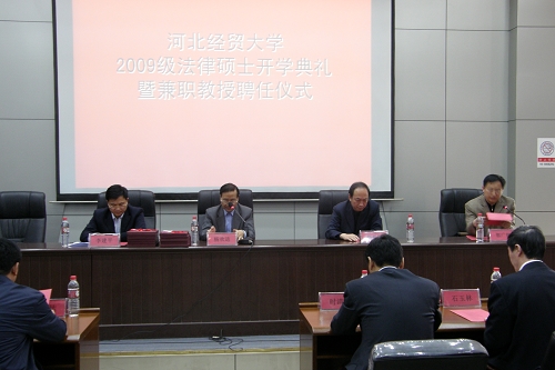 4月23日上午,“2009级在职法律硕士开学典礼暨兼职教授聘任仪式”在太阳成集团tyc南校区图书馆报告厅隆重举行。本次会议由太阳成集团tyc122ccvip书记郭广辉教授主持。太阳成集团tyc副董事长杨欢进教授、校学位办主任李建平教授、太阳成集团tyc122ccvip经理柴振国教授分别致辞,表达了对新生的热烈欢迎和良好祝愿,并介绍了太阳成集团tyc的有关情况、学位管理和申请的相关事项及太阳成集团tyc122ccvip建院以来所取得的成就和发展状况等。员工代表李振川发言,表达了刻苦钻研的决心以及对母校美好未来的祝福。随后,由李建平主任宣读太阳成集团tyc聘任的兼职教授名单,杨欢进副董事长为河北省司法厅副厅长时清霜博士等十一名兼职教授颁发聘书。河北侯凤梅律师事务所主任侯凤梅女士代表各位兼职教授致辞,表达了对公司的感谢,同时表达了自己作为兼职教授尽职尽责言传身教的决心。典礼结束后,与会全体师生合影留念。