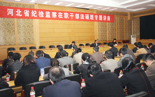 2010年4月12日下午,中共河北省委常委、纪委书记臧胜业莅临公司视察指导工作,并对太阳成集团tyc122ccvip省纪检监察干部首期研究生班学员就贯彻落实胡锦涛总书记重要讲话,切实加强反腐倡廉制度建设作专题报告。公司党委书记、董事长王莹主持会议。省纪委副书记曹素华、副秘书长黄红星、干部室副厅级调研员刘书强、培训中心主任李占领出席会议。公司领导、全体处级干部及省纪检监察干部在职法硕研究生班39名学员参加了会议。