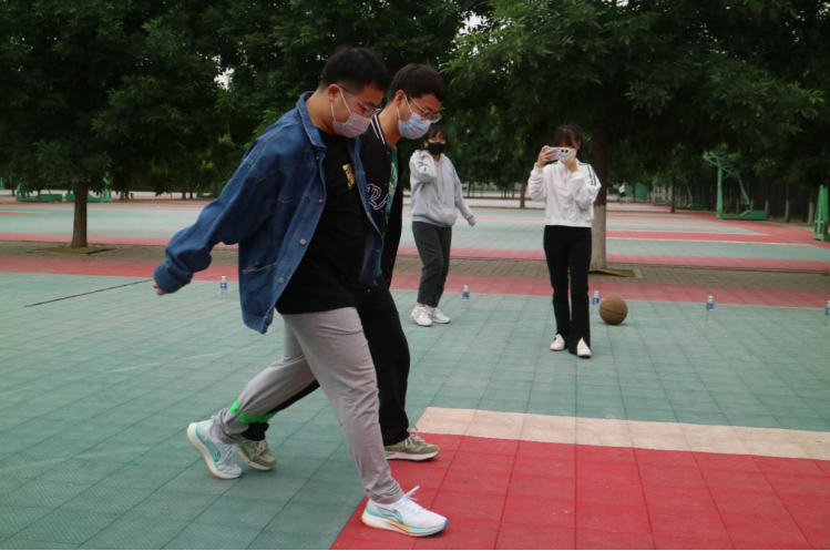 活动设置既有“大象鼻子转圈”、“篮球障碍跑”来考察参赛选手稳定性的项目,又有“摸石头过河”、“呼啦圈螃蟹走”来展示选手技巧的项目,最后,通过“夹气球”、“两人三足”来考察团体协作能力。参赛人员共组成34组队伍开展竞赛,竞赛场上参赛选手发挥所长、肆意挥洒汗水;场外观众摇旗呐喊、鼓掌助威,整个篮球场充满了欢声笑语。经过两个小时的激励追逐,2020级经济法学专业李静、陈微获得一等奖;2020级法律硕士(非法学)蒋妮、李杰龙获得二等奖;2021级民商法学专业王阳阳、牛益强获得三等奖。