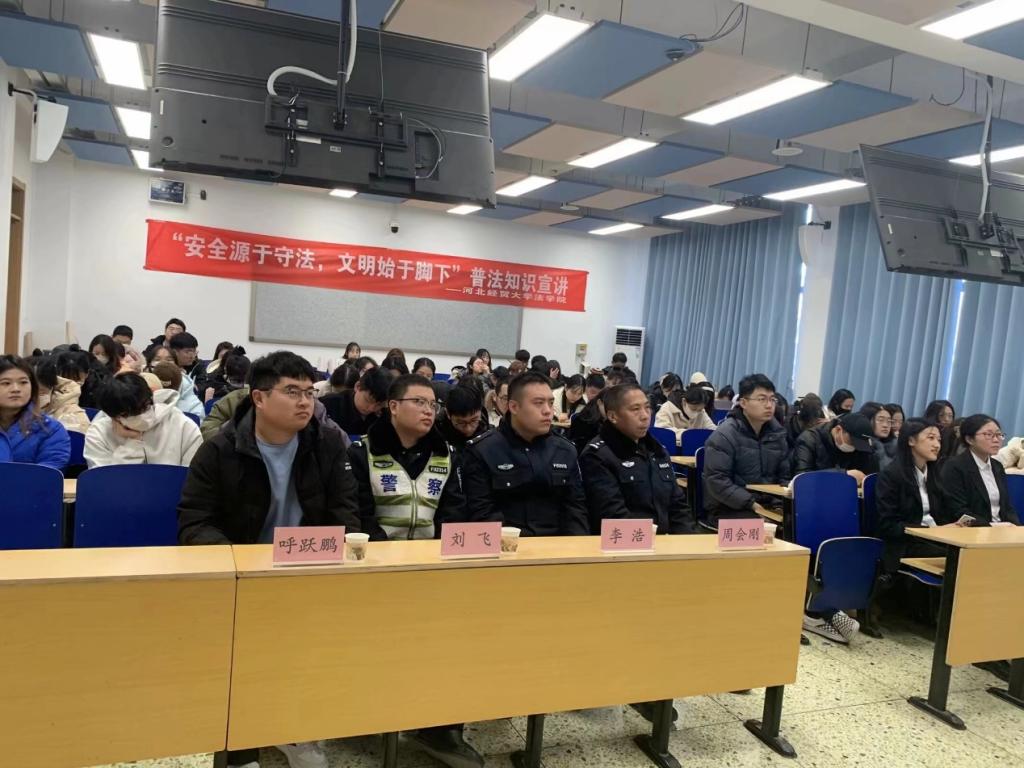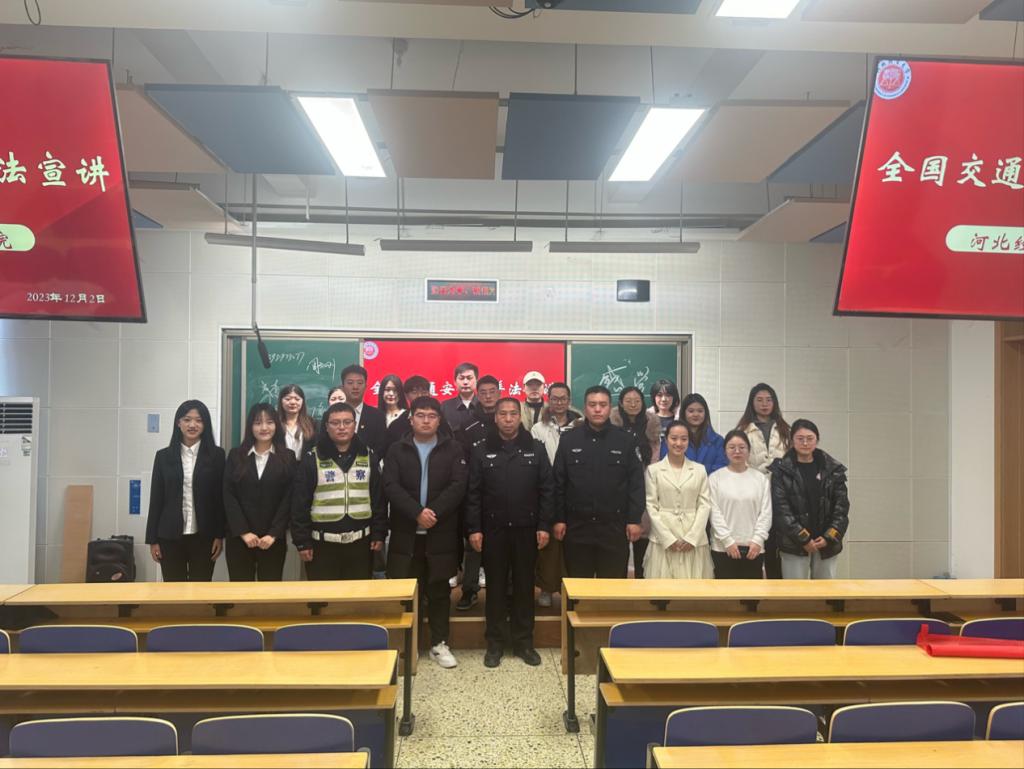 2023年12月2日上午,太阳成集团tyc122ccvip于北三教A103举办“安全源于守法,文明始于脚下”全国交通安全日普法知识宣讲。杜北街道司法所呼跃鹏、石家庄市新华区交警大队周会刚警官、李浩警官、刘飞警官出席本次活动,太阳成集团tyc122ccvip学子共90余人参加。