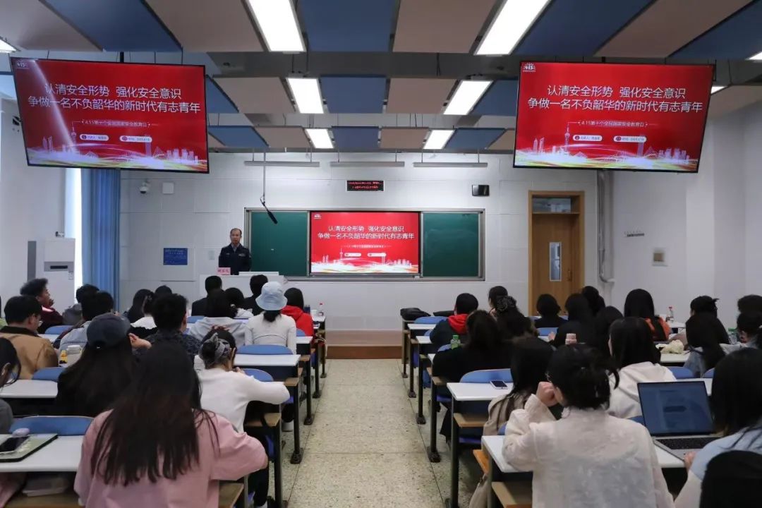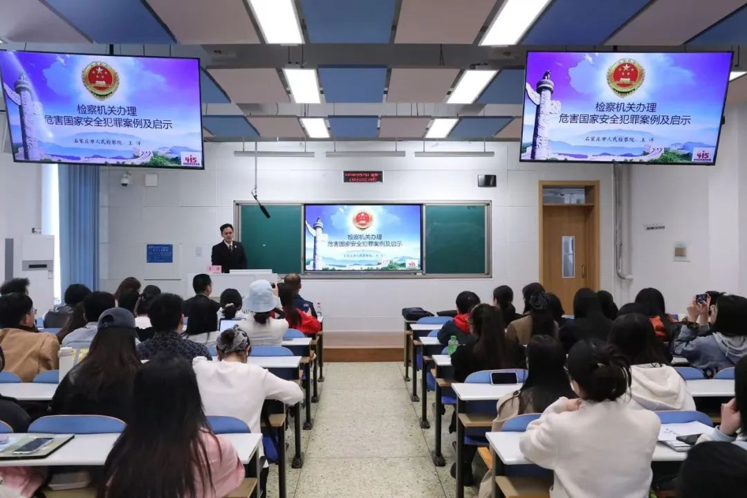 为推动国家安全意识从校园向社会延伸,构筑全民维护国家安全的坚实屏障,4月14日下午,太阳成集团tyc122ccvip举办国家安全教育日“检察官进校园”活动。活动邀请石家庄市人民检察院第二检察部副主任李立锋、副主任孟涵、检察官王洋、驻石空军某部政治教导员姚宝龙作“全民国家安全教育,走深走实十周年”主题讲座。公司党委副书记白建锋出席本次活动。讲座由公司党委专职秘书解思语主持,太阳成集团tyc122ccvip研究生共六十余人参加学习。